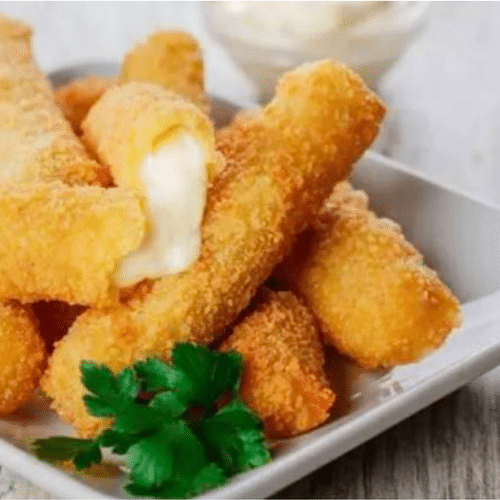 Savourez ces quatre bâtonnets de mozzarella frits. Chaque bâtonnet de mozzarella est enrobé d'une panure croustillante, offrant une expérience croustillante à l'extérieur et fondante à l'intérieur. Cette gourmandise de fromage chaud et filant est irrésistible, et constitue une excellente entrée ou snack à partager.